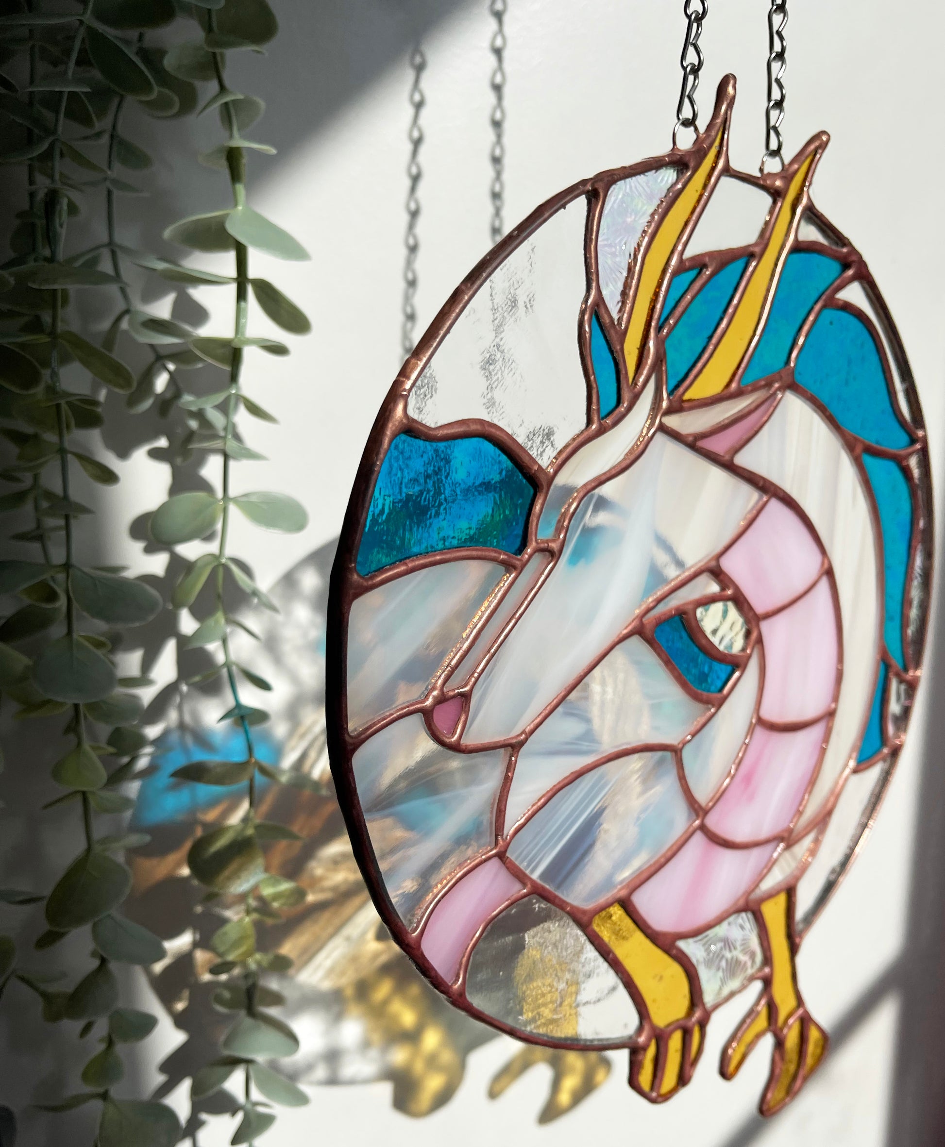 Beautiful hand made stained glass suncatcher inspired by Haku from Spirited Away