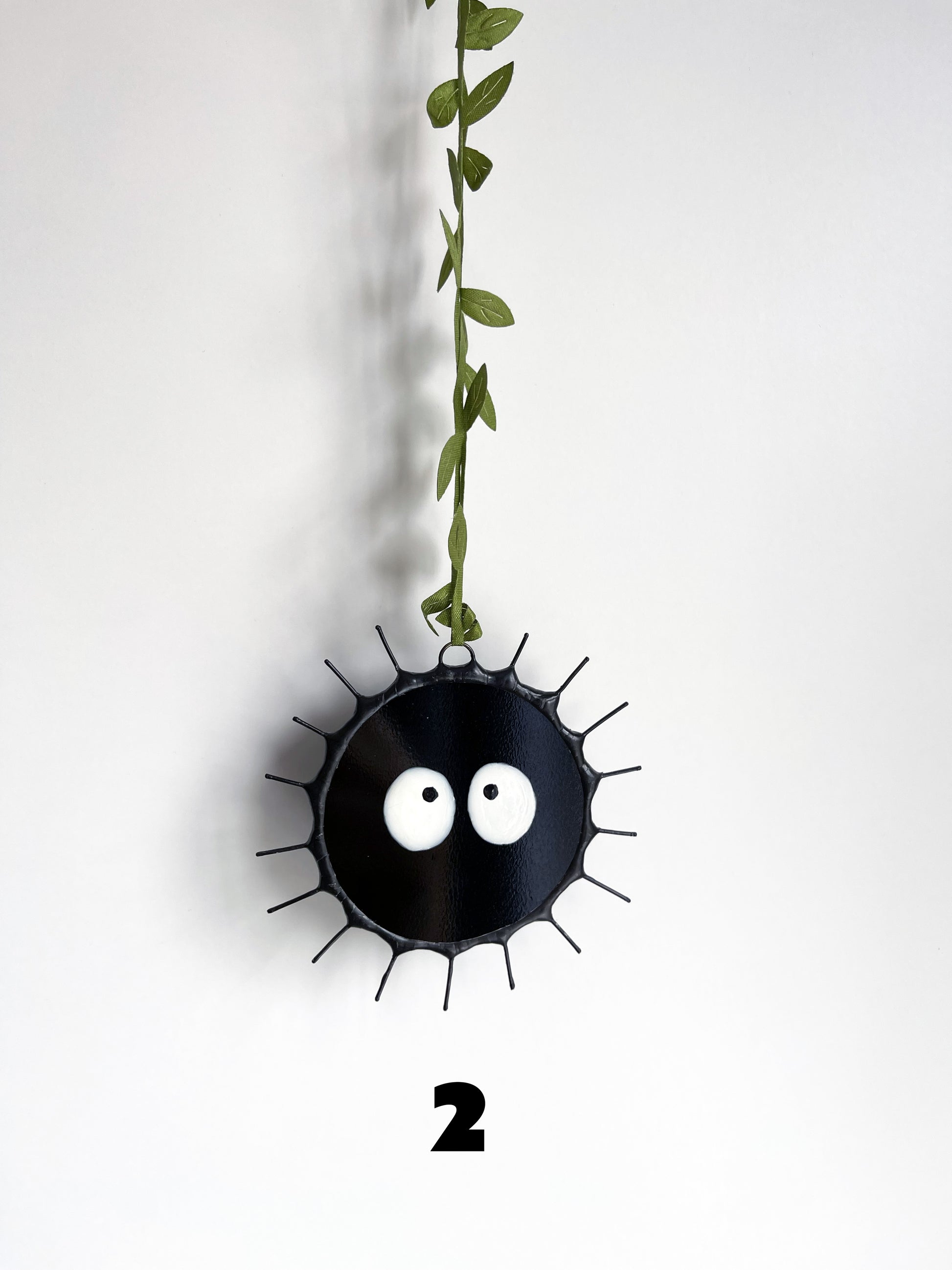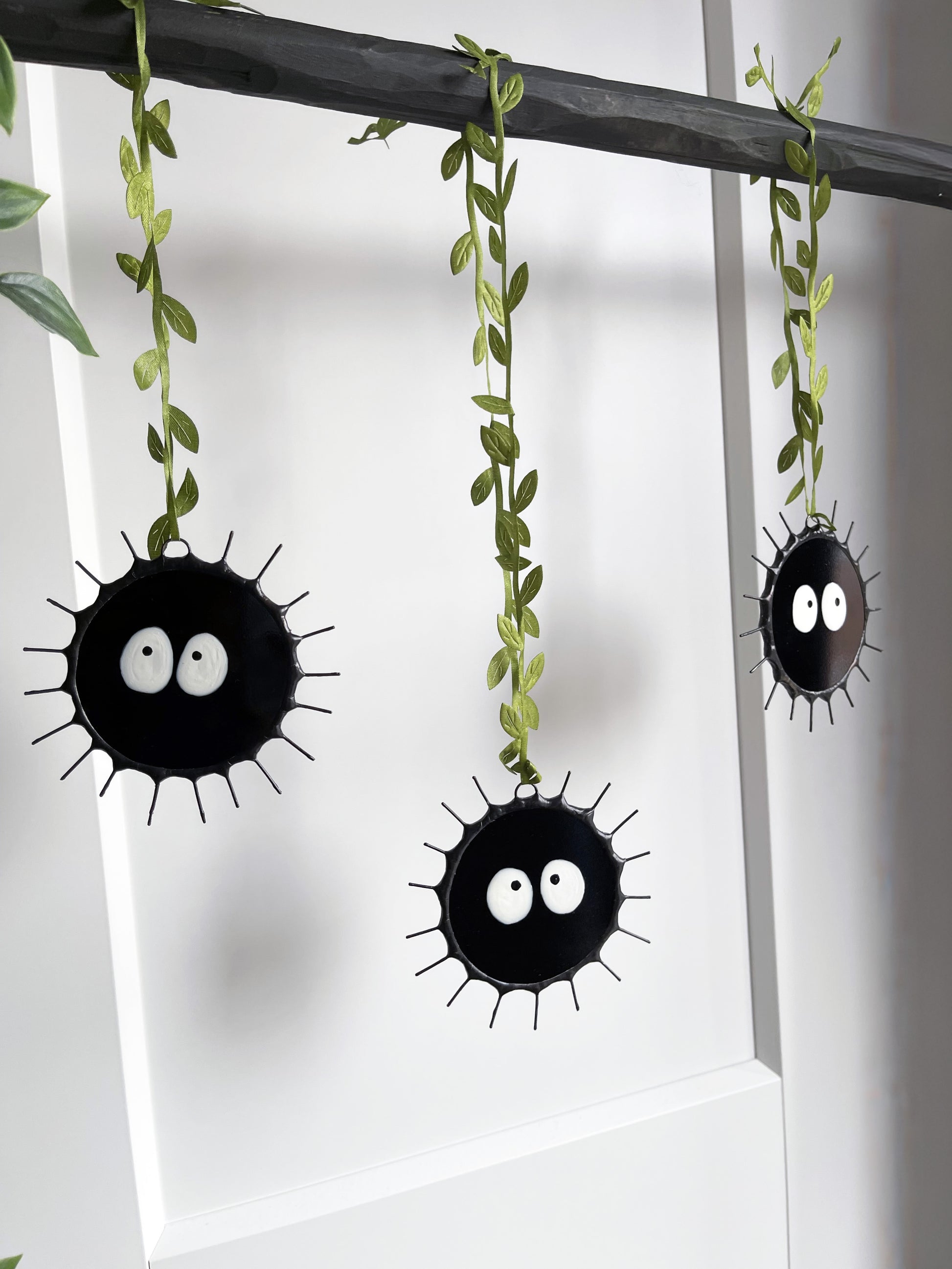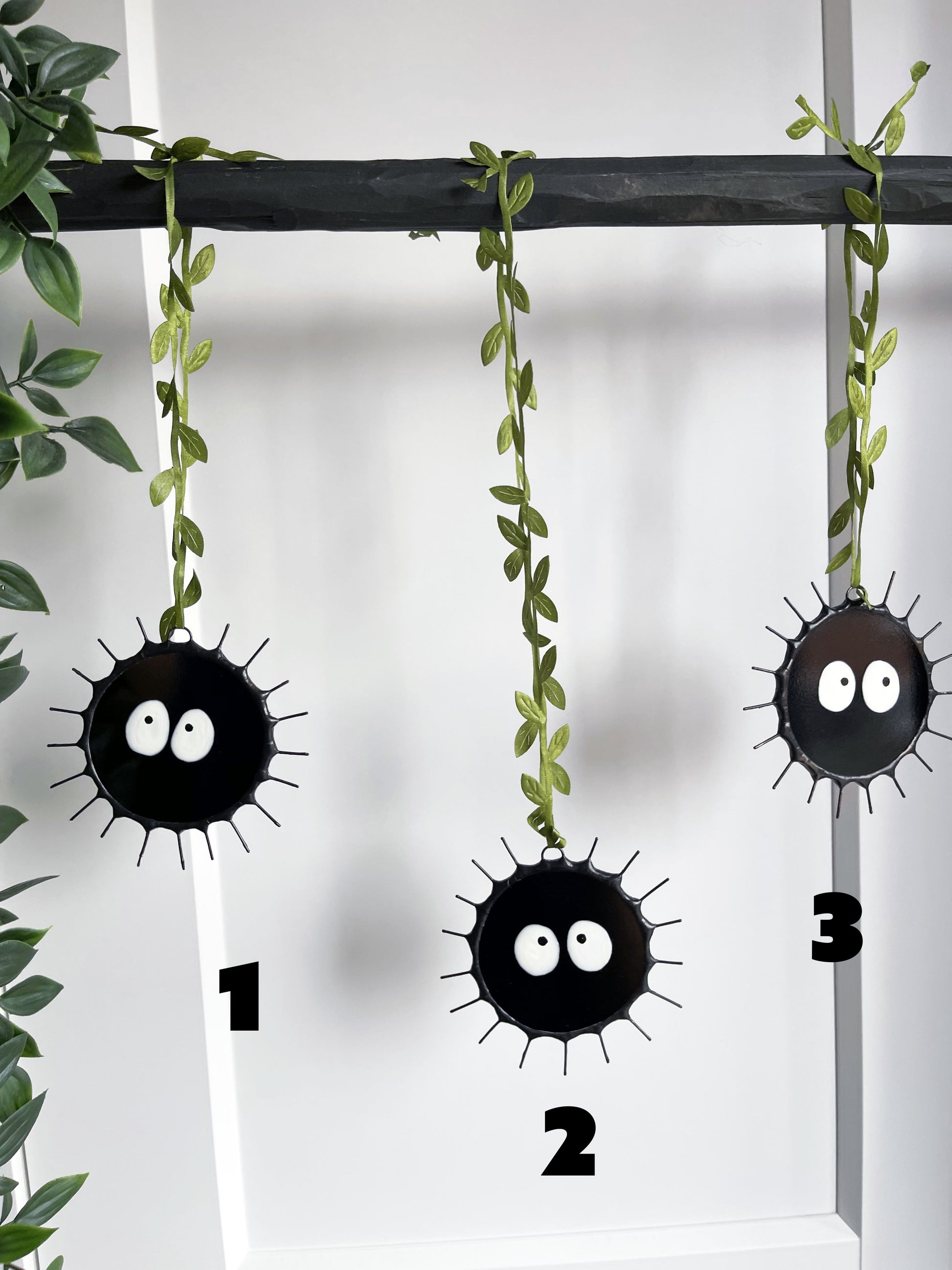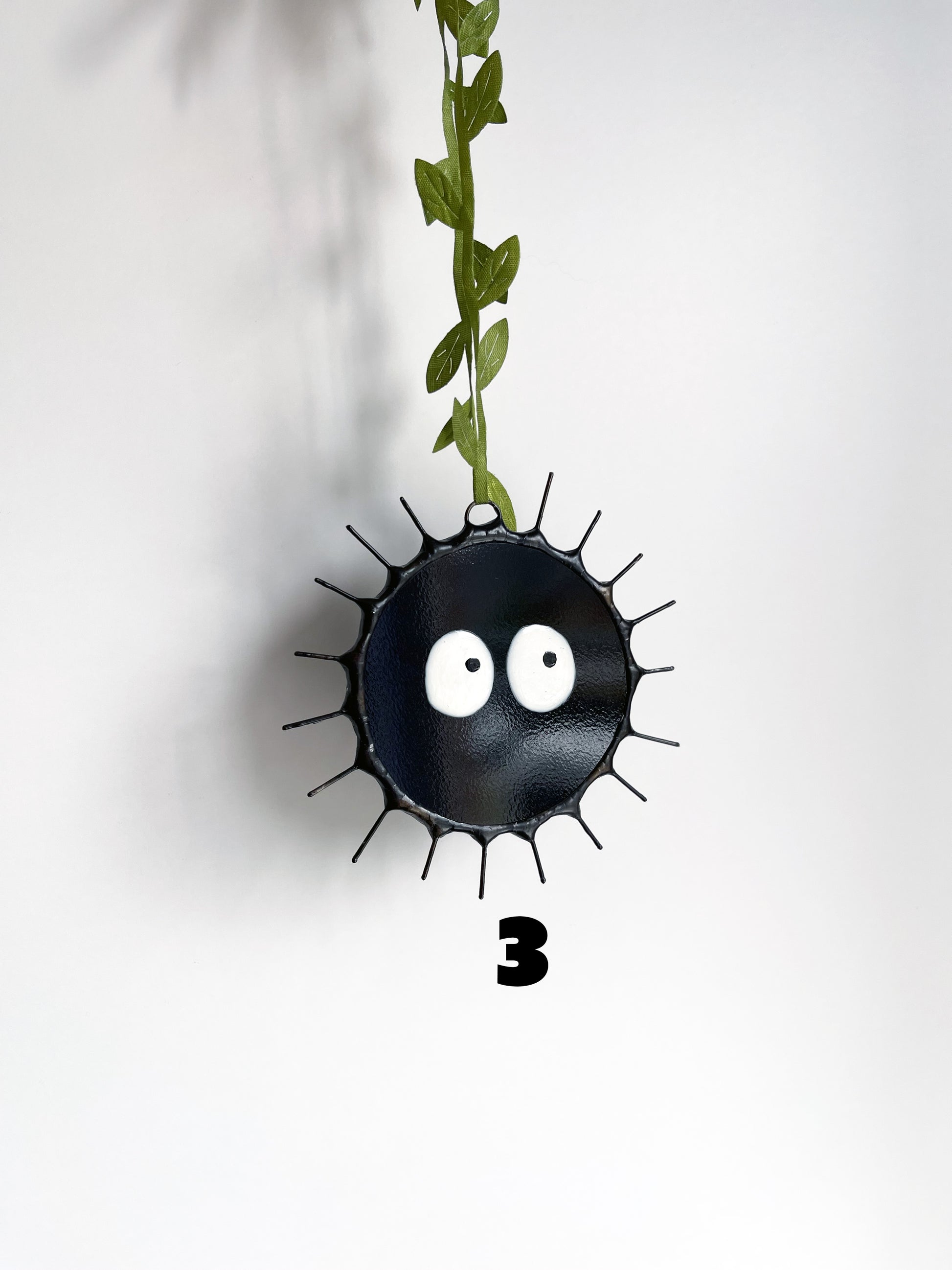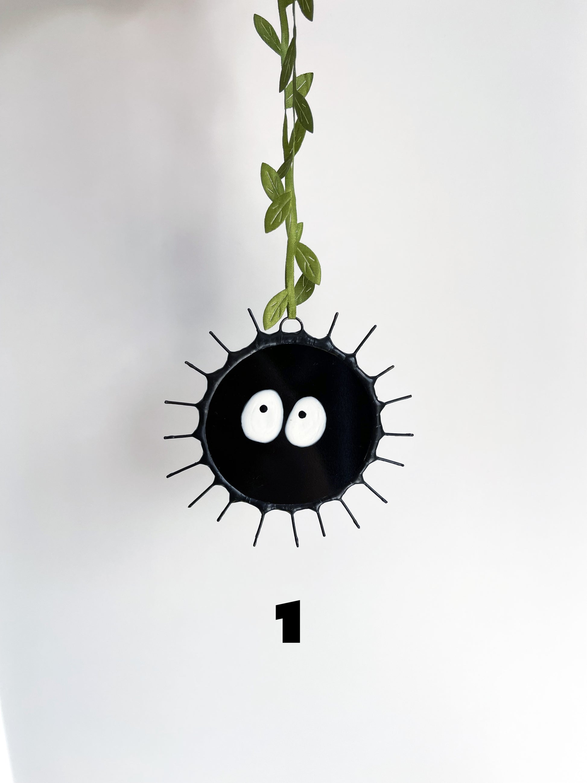 Hand-made individual stained glass Soot Sprites inspired by Studio Ghibli.