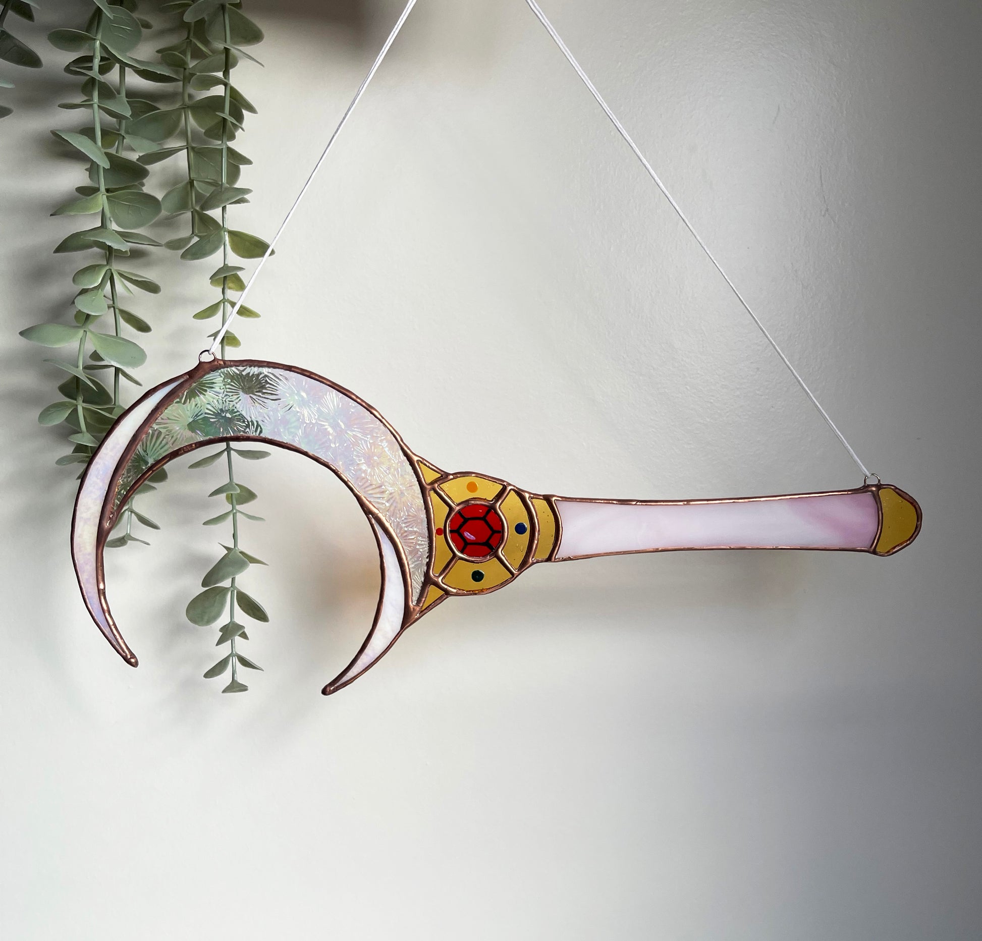 Beautiful handmade stained glass suncatcher of Sailor Moon's Wand from the popular anime series