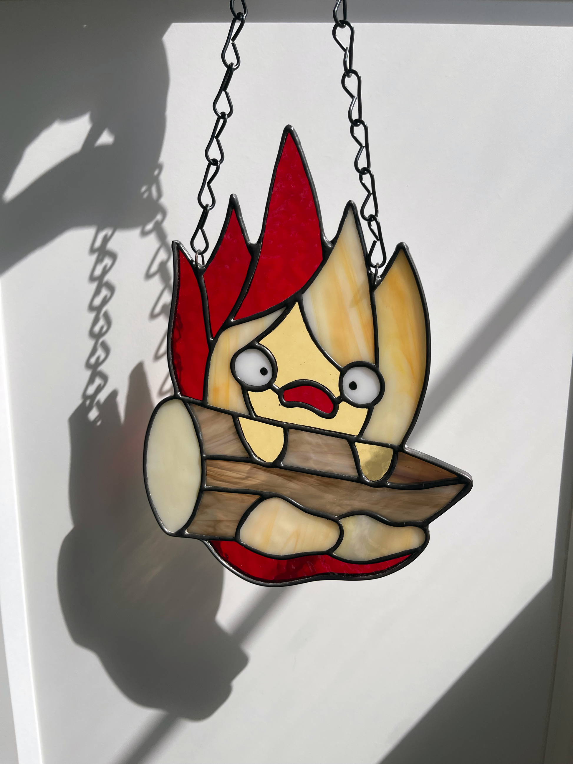 Beautiful hand made stained glass suncatcher inspired by Calcifer from Howl's Moving Castle